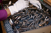 – Å steintromle bestikk var ikke vanlig tidligere. Da ville kundene ha høyglans. Det at trenden har vridd seg mot rustikk og vintage, har muliggjort dette.