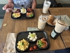 Jeg slo meg ned der sammen med noen av de nye menneskene jeg møtte dagen før. Laks, ost, eggerøre og iskaffe ble perfekt start på dagen, og praten gikk om alt fra kulturforskjeller til backpacking.